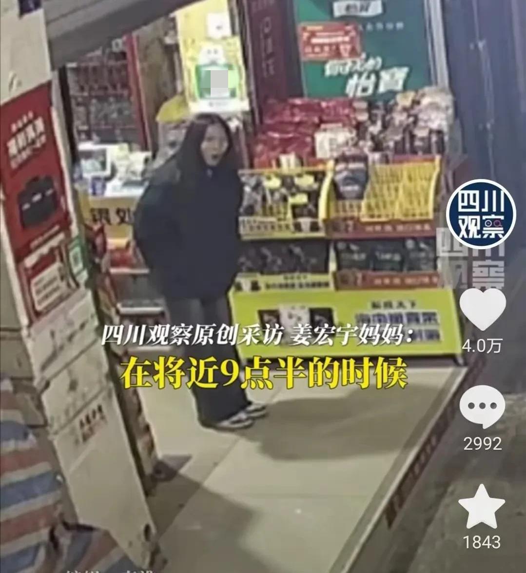 晚上9點50分,姜宏宇離開了超市,隨後消失在監控盲區,徹底失聯了。
