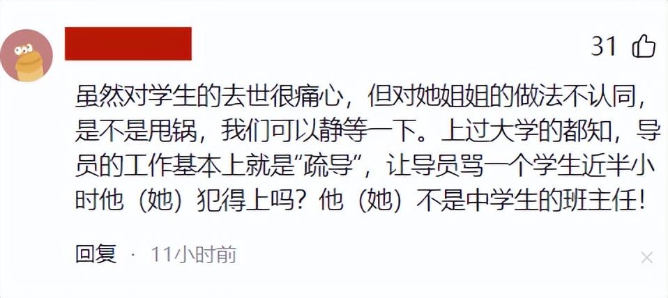 有網友說大學輔導員和初中高中班主任不一樣,他們是多一事不如少一事,犯不着辱罵學生。