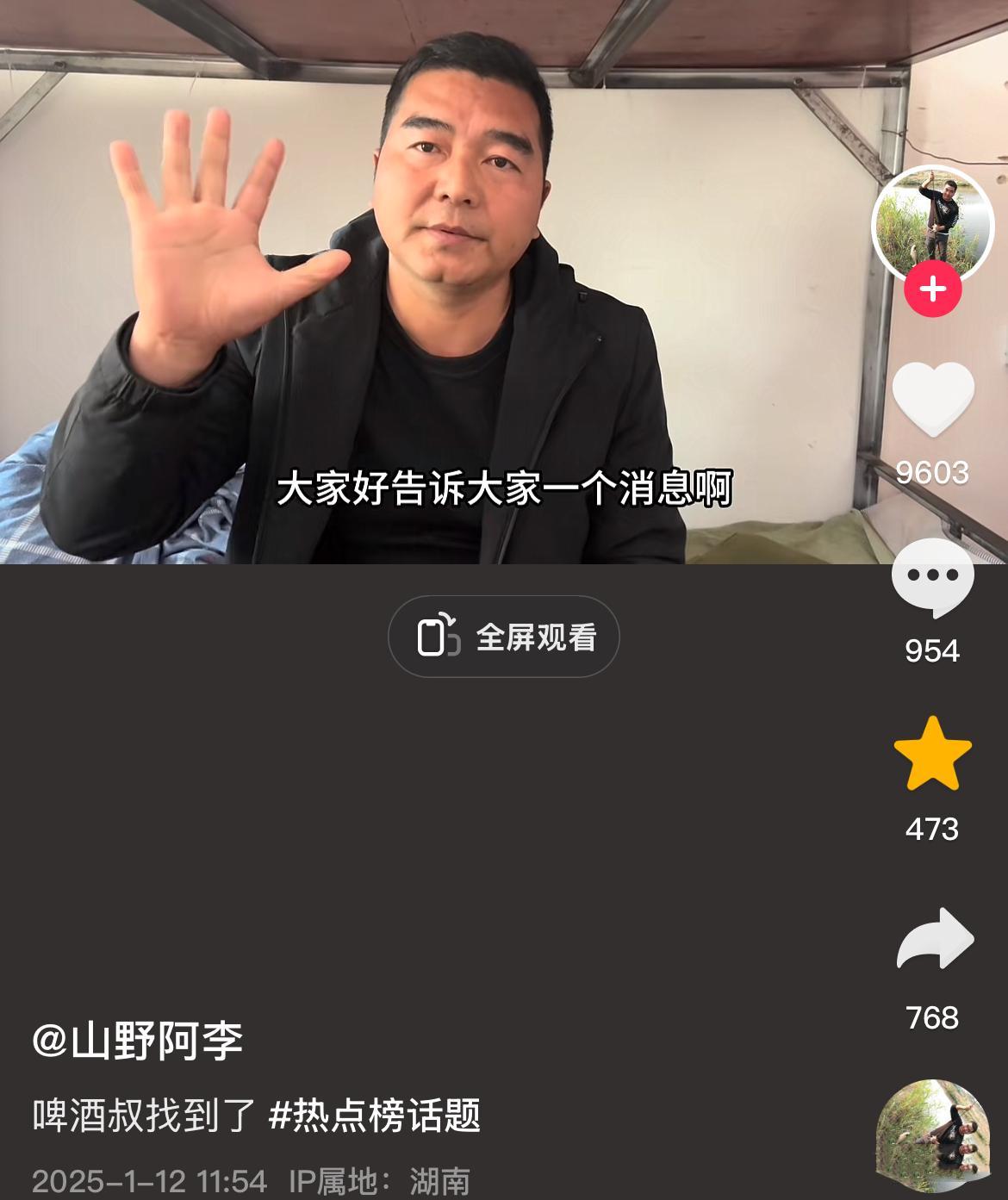 這一天,阿李發視頻稱啤酒叔已經找到了,但找到的是冰冷的遺體,阿李透露啤酒叔是死在了田裏。