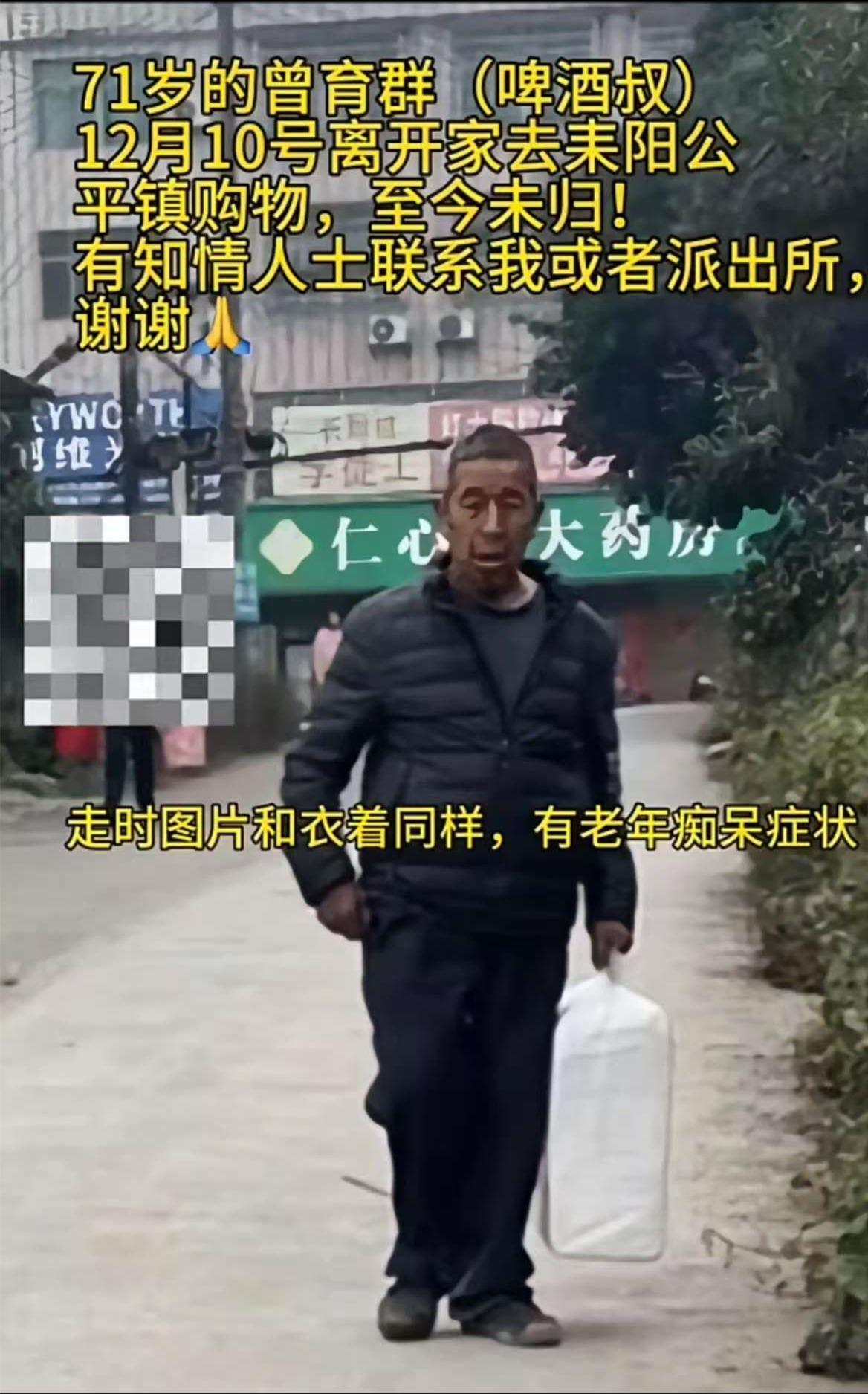然而令人沒有想到的是,2024年12月10日,啤酒叔一個人去趕集,再也沒有回來。
