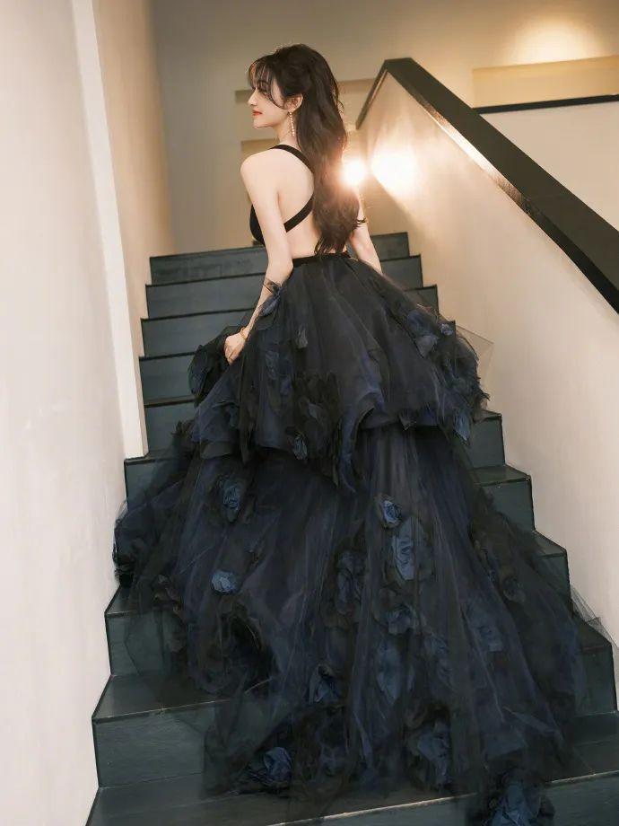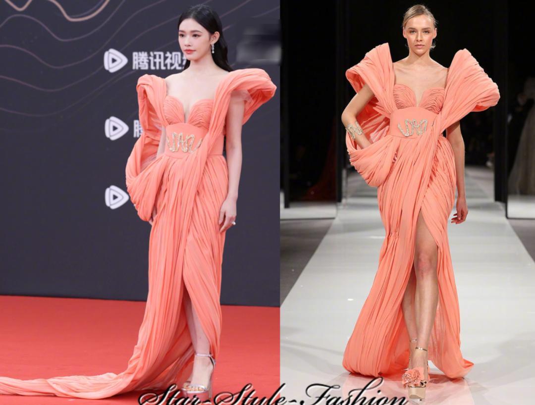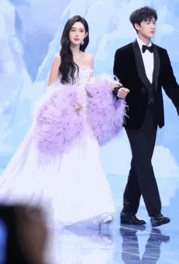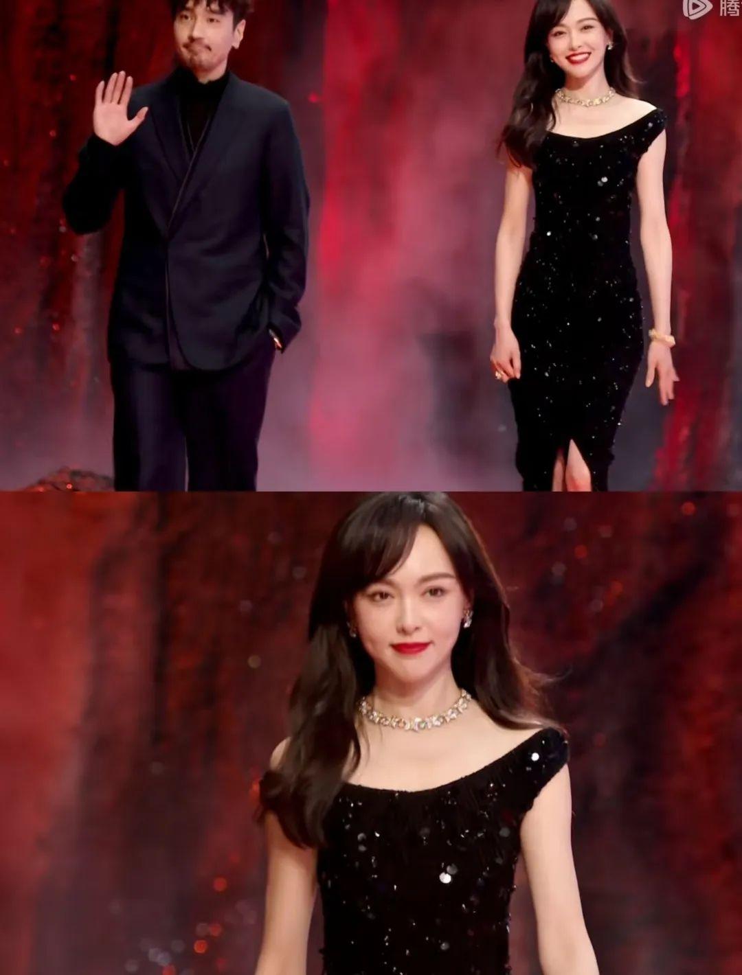 景甜這次走的公主風,禮服款式和田曦薇有點像。