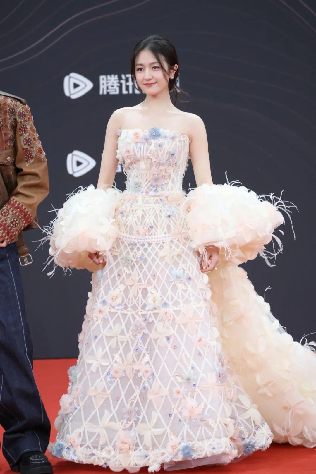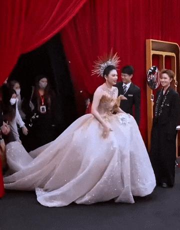 最隆重的莫過於張雨綺,太拼了,穿着重達50斤的裙子,走紅毯時需要幫助才能撐開。