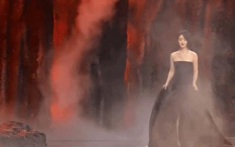 或許是瘦下來加上狀態好的原因,過重的裙襬和大披帛沒有顯得那麼笨重,也沒有讓個子不高的她顯矮。
