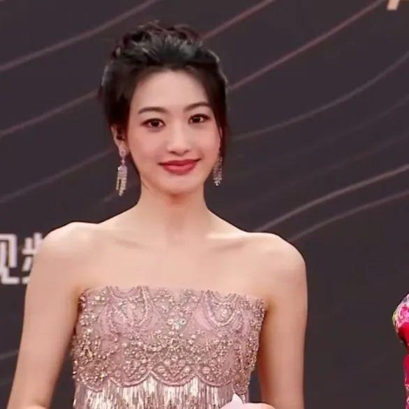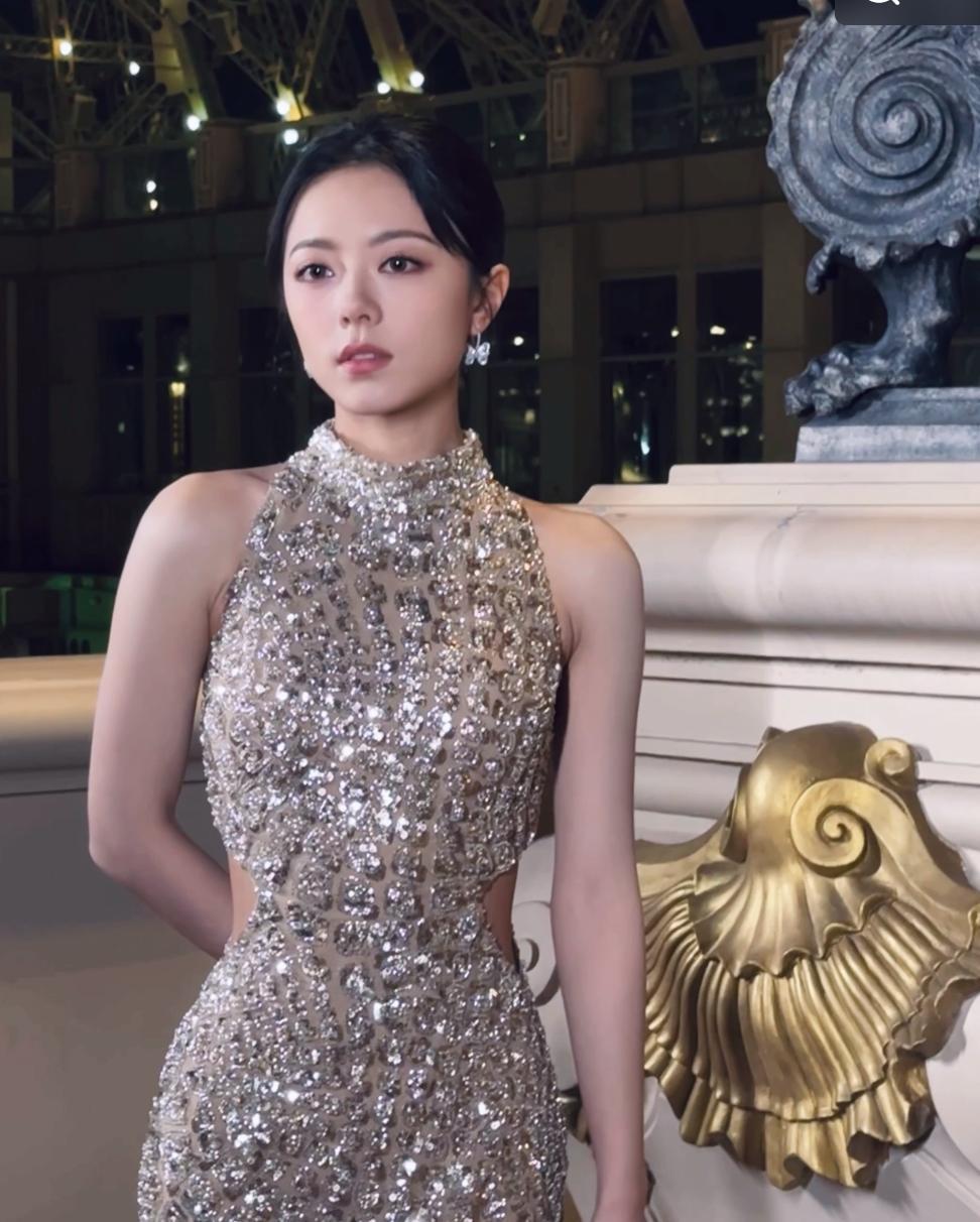 以一襲亮片珠光長裙亮相的趙今麥,同樣驚豔。