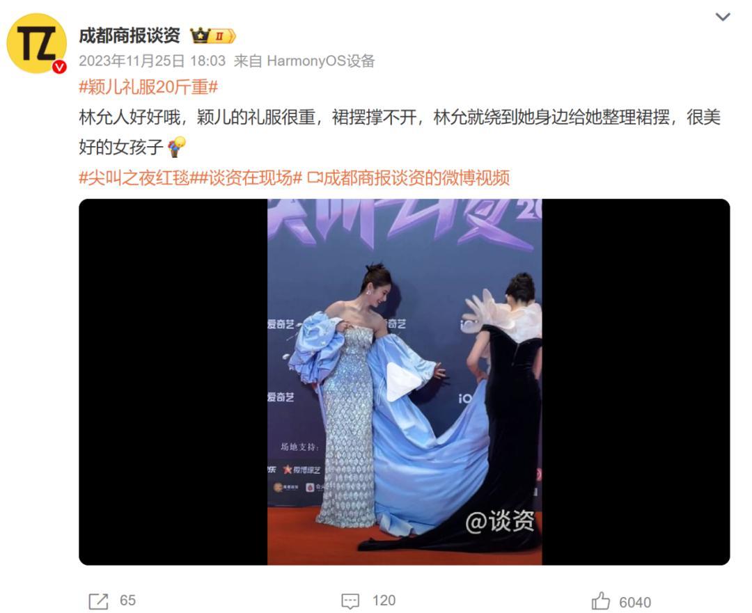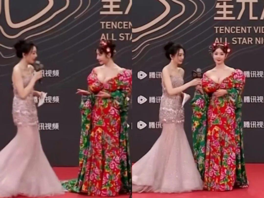 禮服同樣採用低胸設計,發佈的一組寫真裏,豐盈的上圍尤爲搶眼,不過在網友們看來太誇張了。