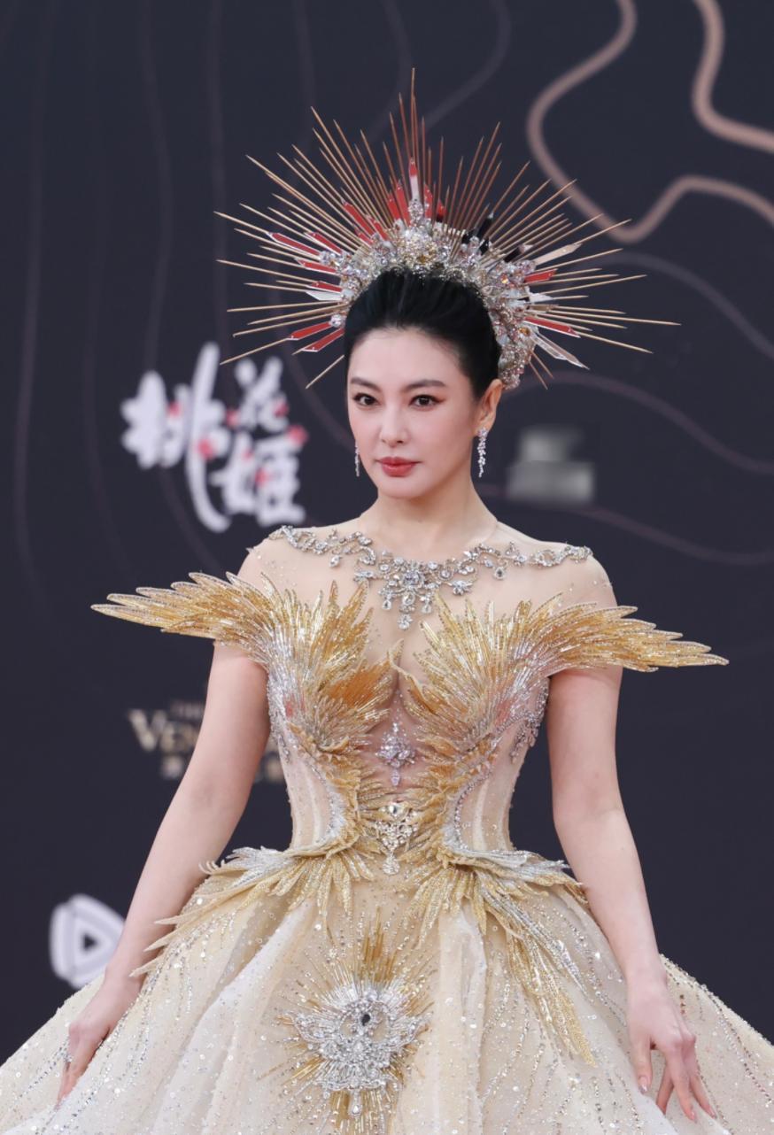 這身耀眼的造型,不知道的還以爲是金鷹女神要去參加金鷹獎呢。