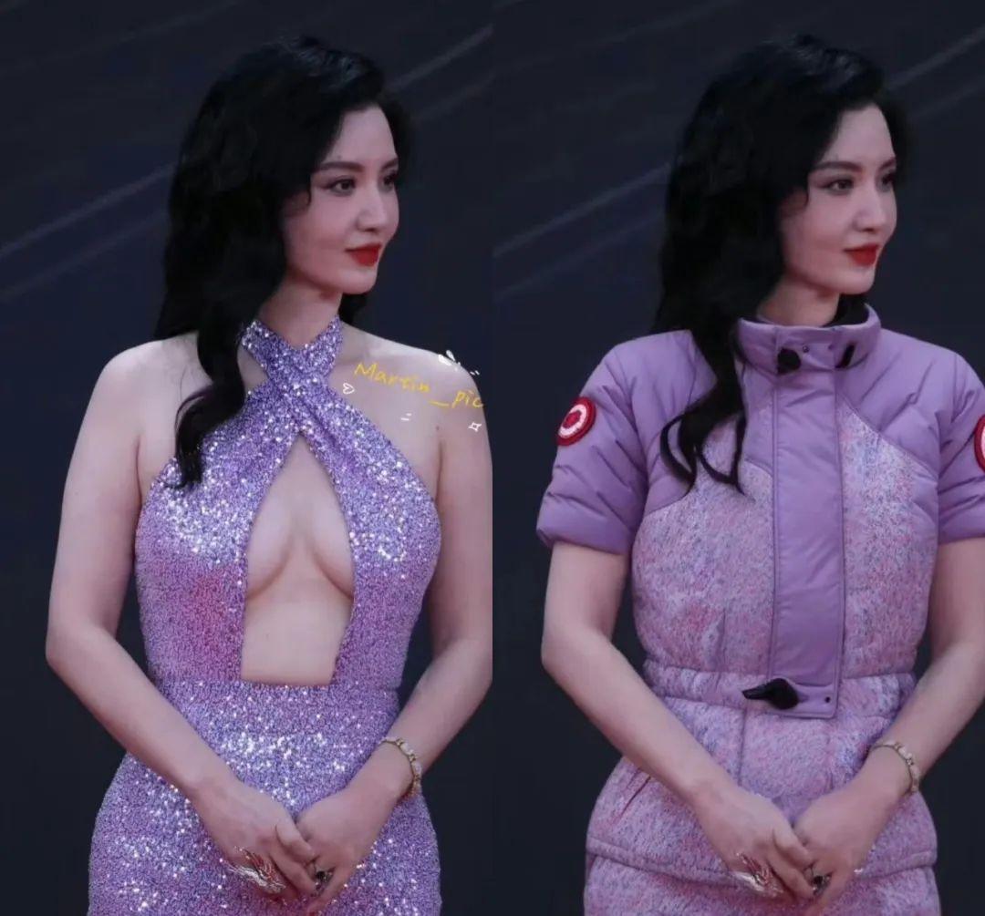 女明星爲了好看,在十幾度的天氣紛紛換上性感清涼的禮服。