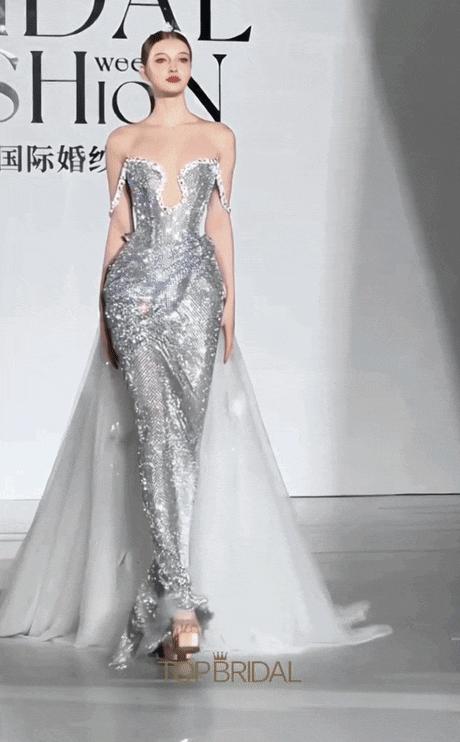 瘦了很多的李蘭迪,這次選擇了一件來自Ivan Yong的婚紗禮服。