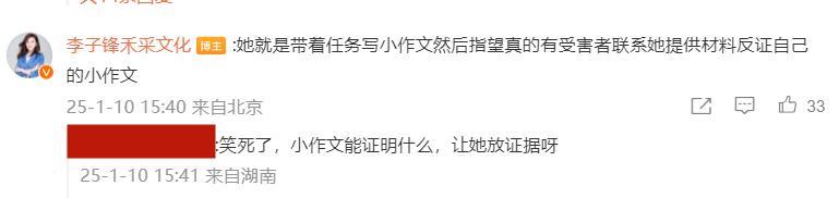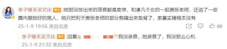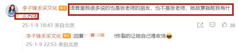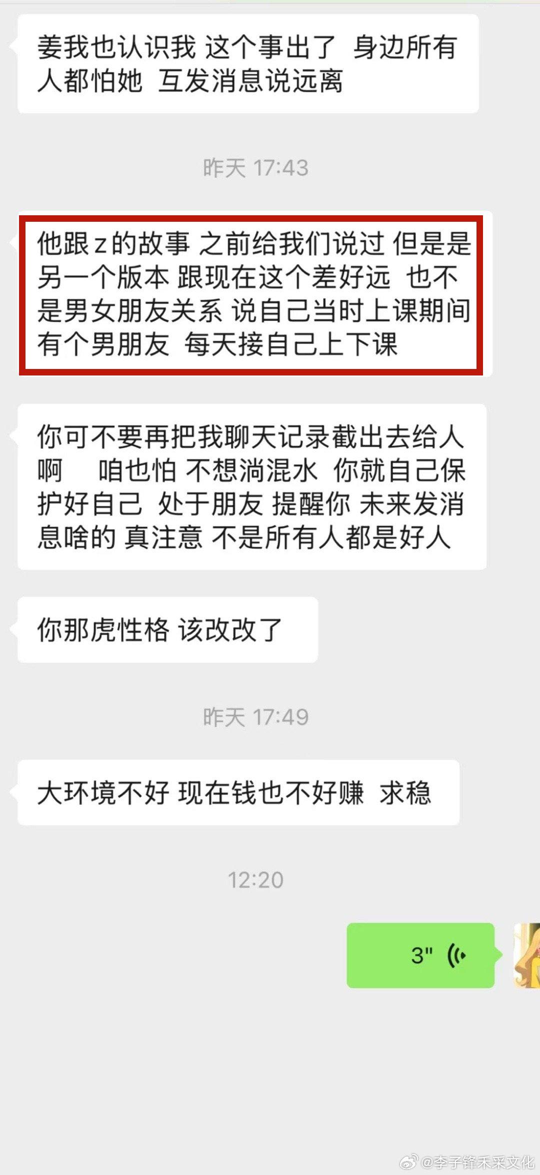 她自己拿不出證據,便發佈與禾採文化總裁李子鋒的錄音和聊天記錄,通過這種方式,變相的錘張頌文。