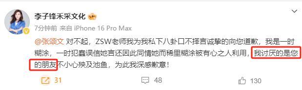 在這條聲明的評論區,李子鋒在與網友互動時直言,姜塵手上沒有張頌文家暴的證據,她就是黑張頌文,爲自己的賬號引流。