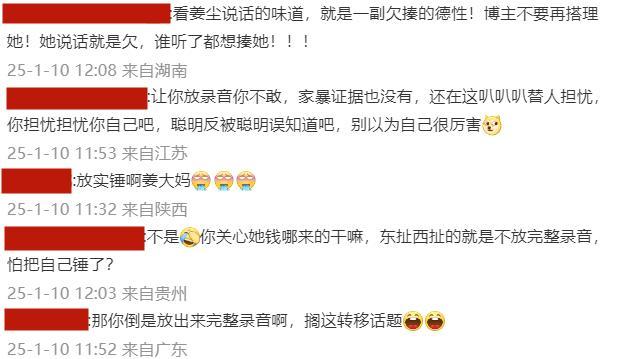 有網友說“讓你放錄音你不敢,家暴證據也沒有,還在這叭叭叭替人擔憂。”