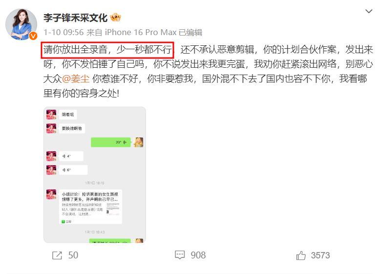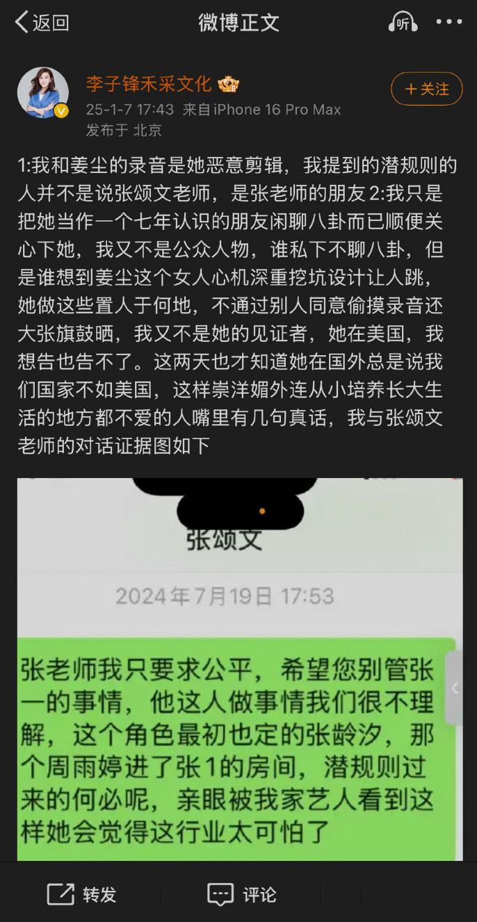 李子鋒還曝出了姜塵故意造謠張頌文的證據。