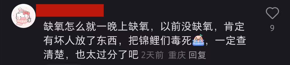 有養過魚的網友則說“這個絕對放藥了,以前我們養魚就遭過,全部死完了的,這種應該嚴查,再讓那個人賠償,真的是太神了。”