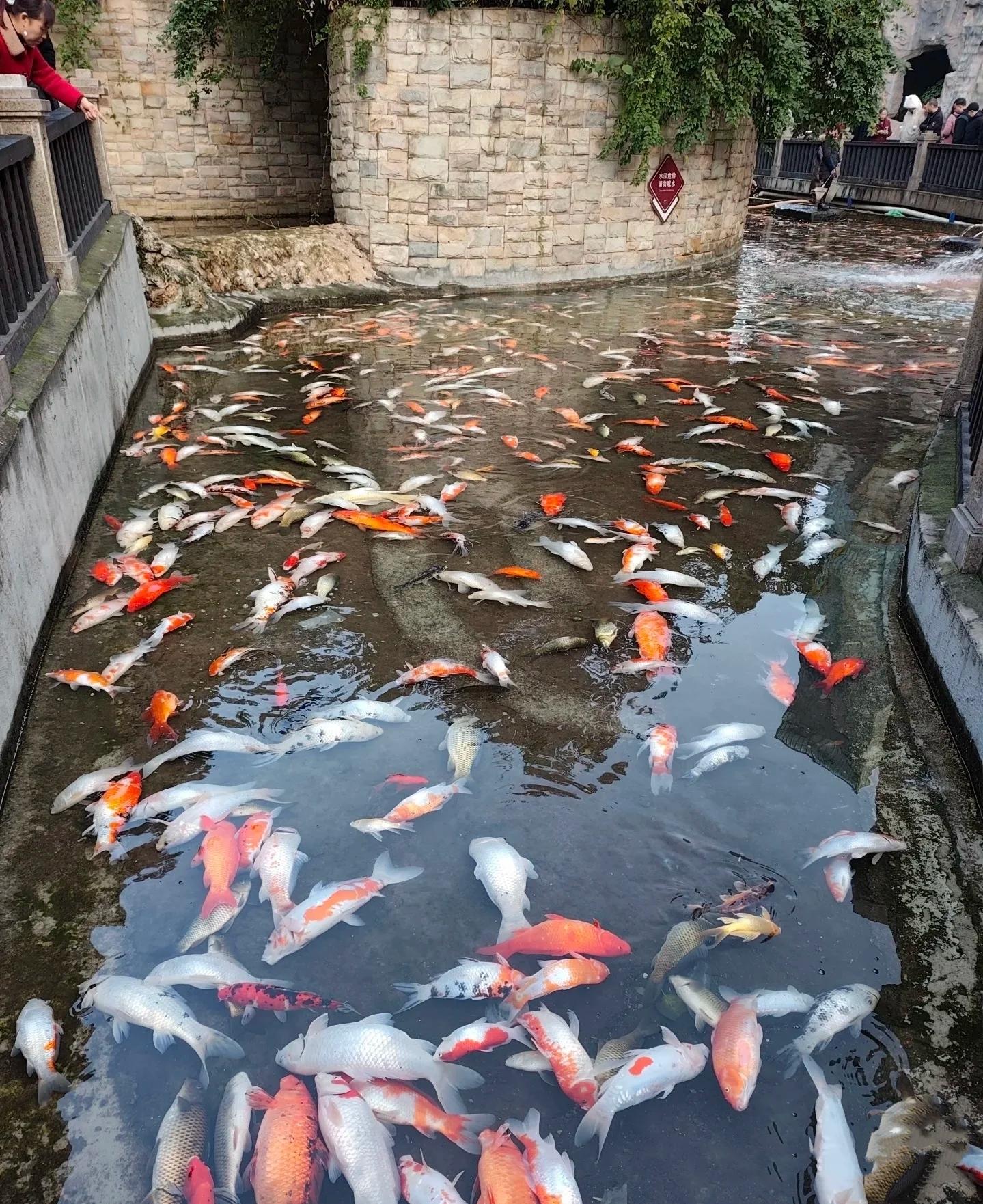 與此同時,大量重慶網友曬出了他們與這些錦鯉互動的照片。