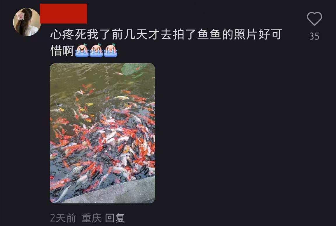有網友說她小時候媽媽帶她來看過這些錦鯉,現在她有孩子了,她帶她的孩子來看這些錦鯉,沒想到這些錦鯉就這麼突然死亡,她非常傷心。