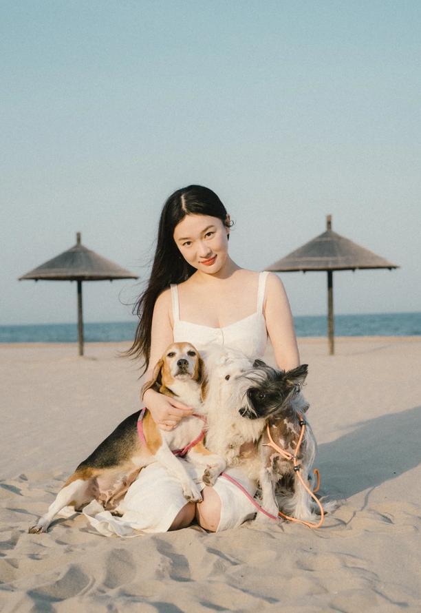 不僅一家三口來了,還帶來了前段時間火爆全網的他們救助收養的實驗狗狗霍珍珠。