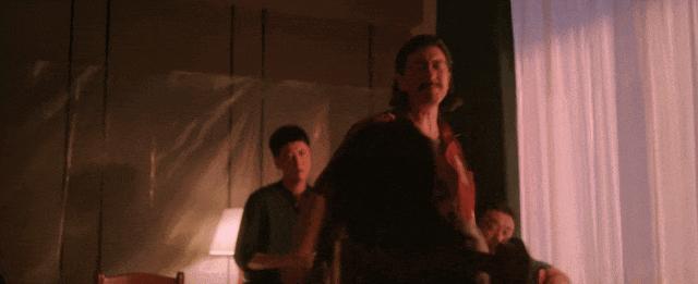 劇中有個名場面,在餐桌上,他連續3句“我愛你”給三位手下表白,然而每個人臉上的表情都僵了。