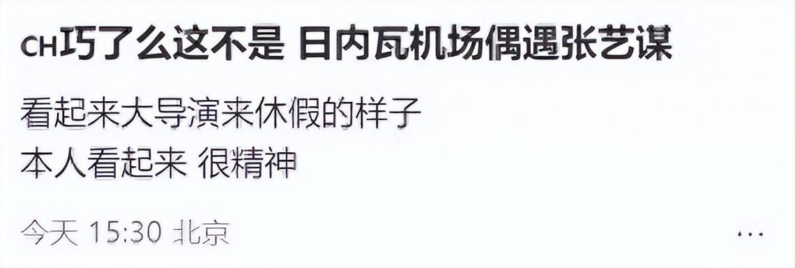 該網友發文稱“巧了麼?日內瓦機場偶遇張藝謀。看起來大導演來休假的樣子。”