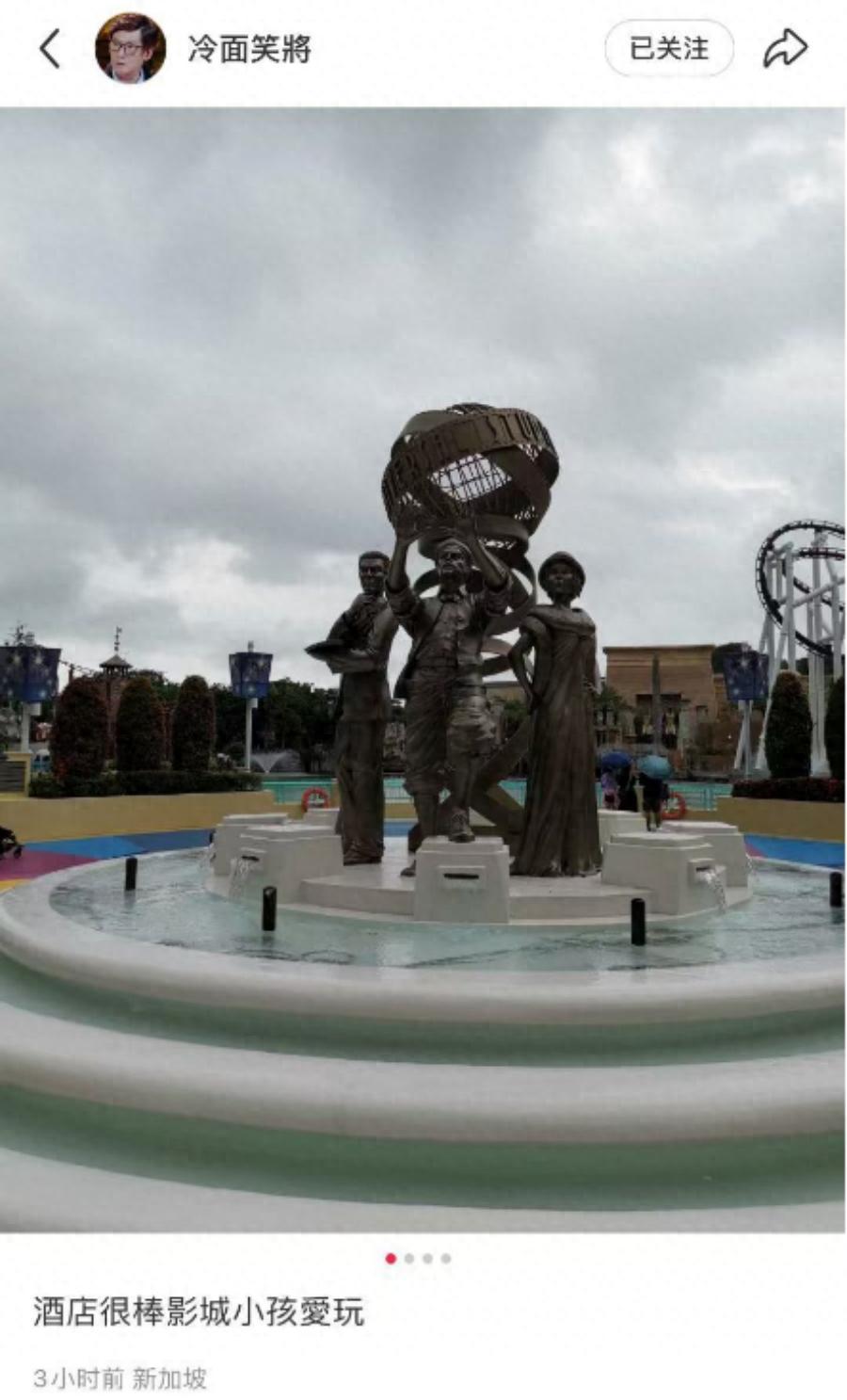 1月28日除夕,郭爸爸非常的高興,他曬出了一家人的出遊照,並配文:酒店很棒,影城小孩愛玩。