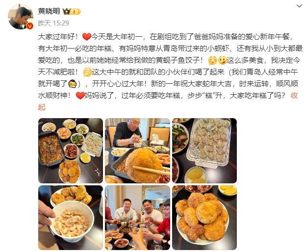 他在文案中寫到,大年初一,他在劇組喫到了爸爸媽媽精心準備的愛心新年午餐。