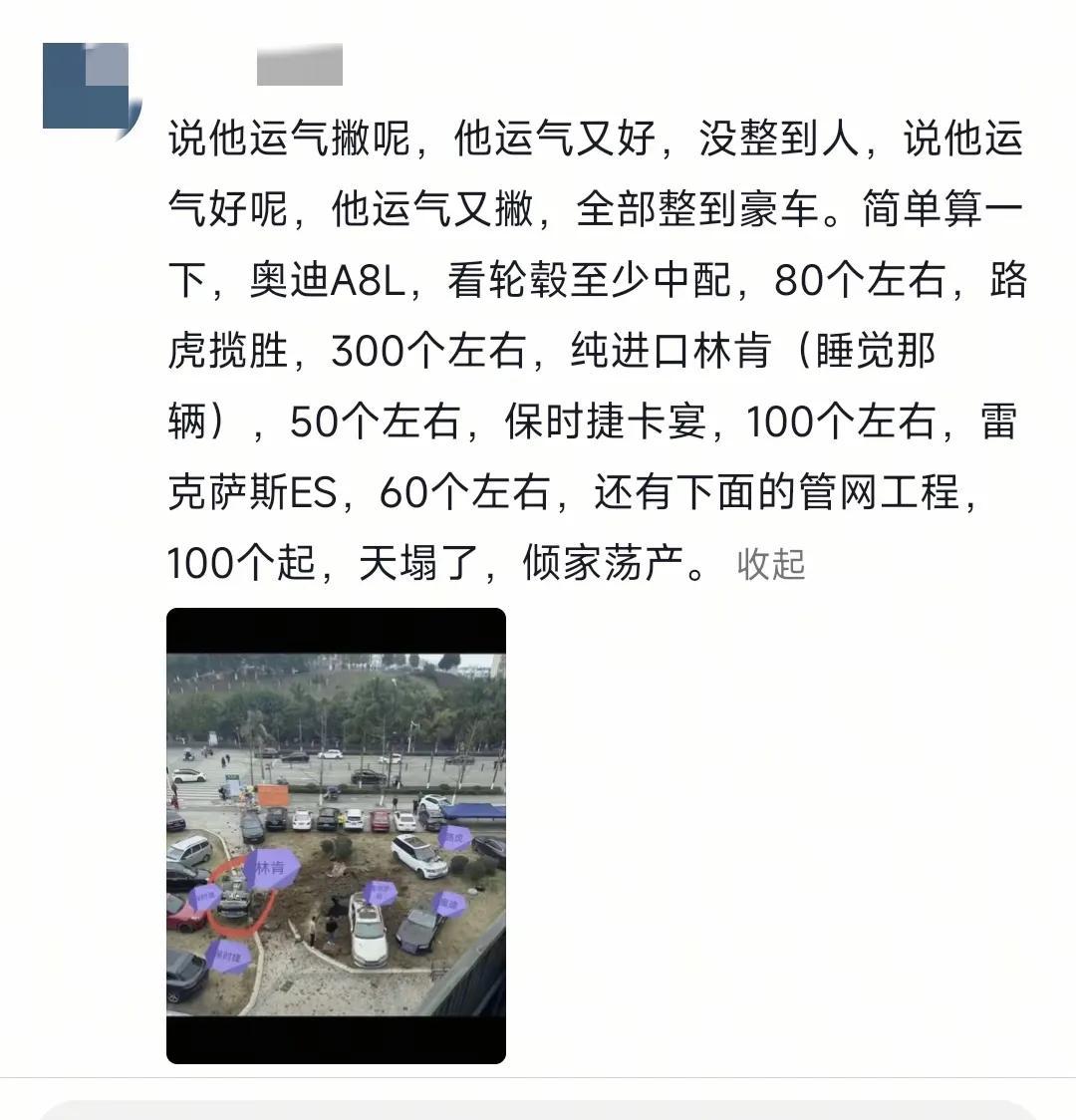 網友粗略算了一下,光這些豪車的維修費用就要上百萬。