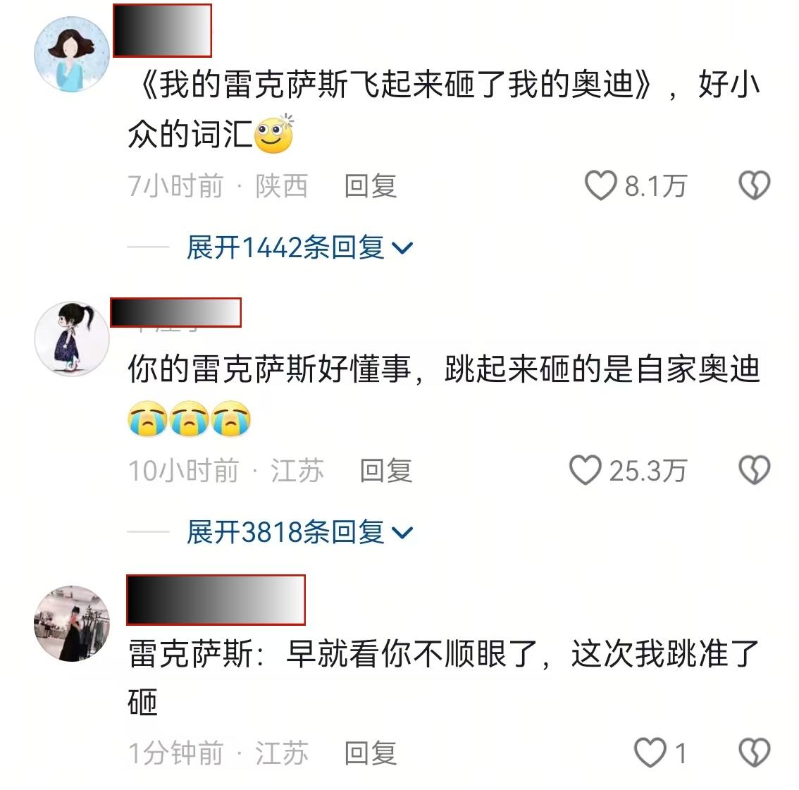 “你的雷克薩斯好懂事,跳起來砸的是自家奧迪。”