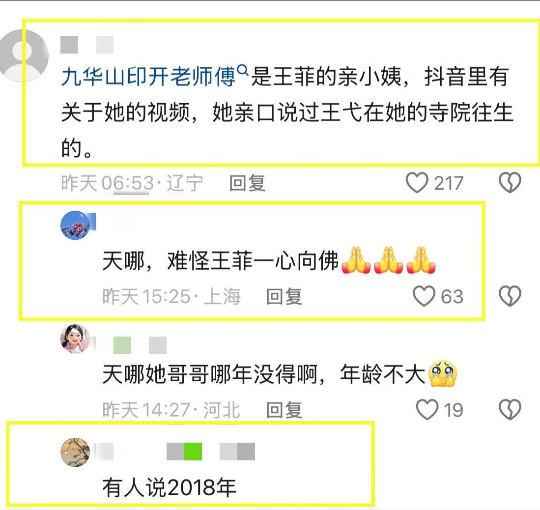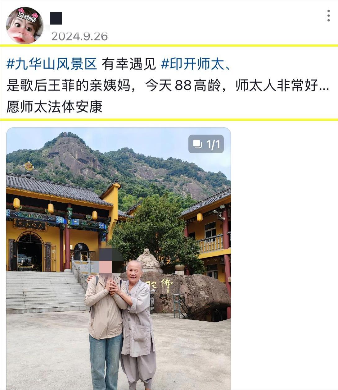 該網友還提到九華山的印開老師傅是王菲的親小姨,她曾親口說王弋在她的寺廟中往生。
