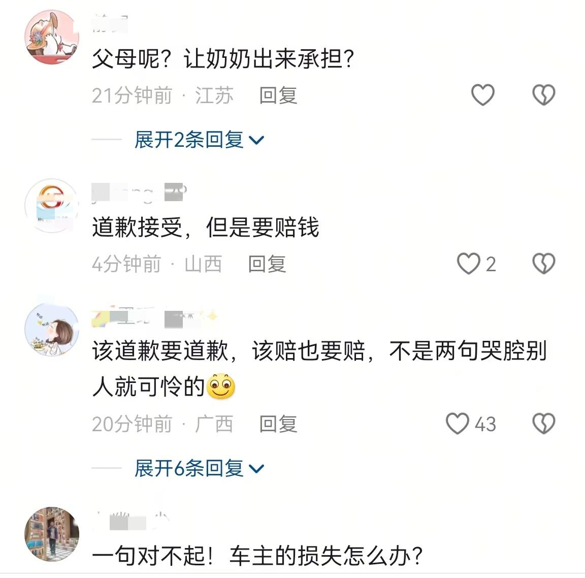 還有網友說出了這麼大的事情,孩子的父母應該露面發聲,而不是讓一個老人面對所有壓力。
