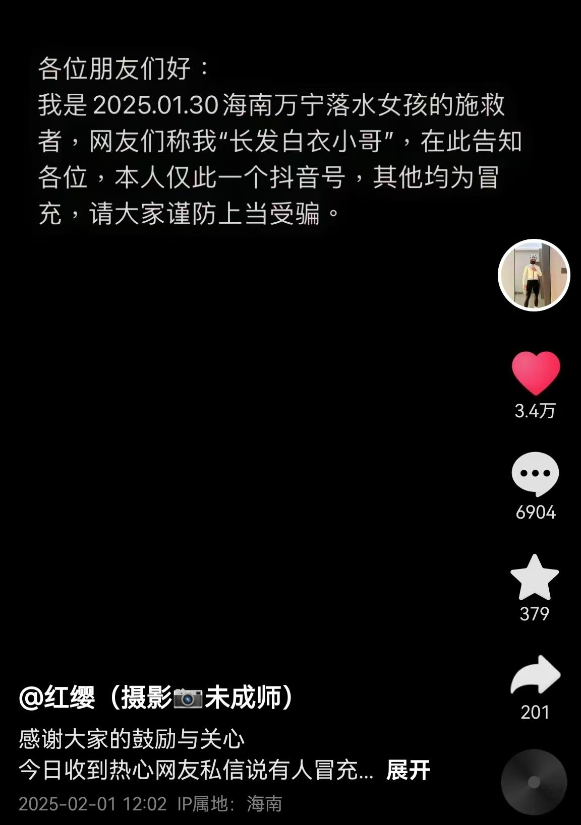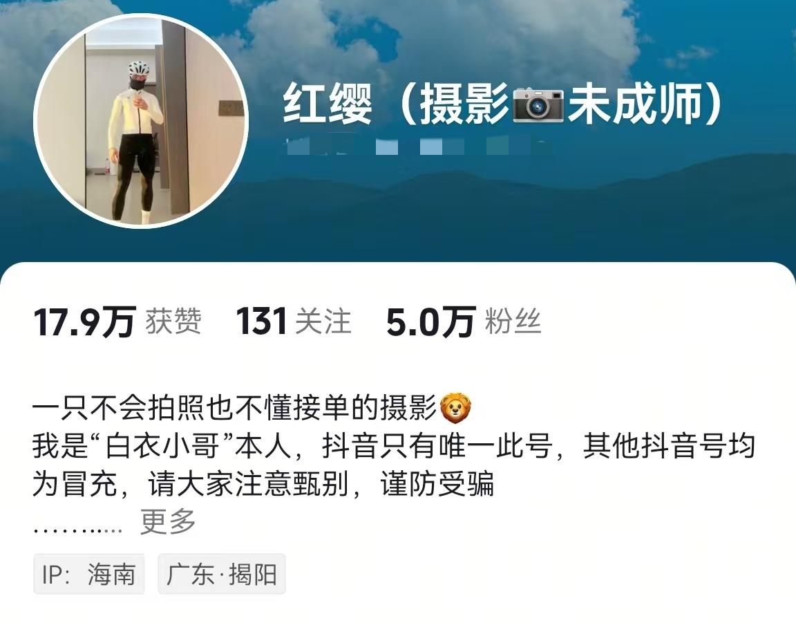 值得一提的是,有很多人蹭白衣男子的流量,假冒他的賬號,爲了防止網友們被騙,白衣男子不得不發一個聲明視頻,直言自己只有一個賬號,希望大家不要上當受騙。