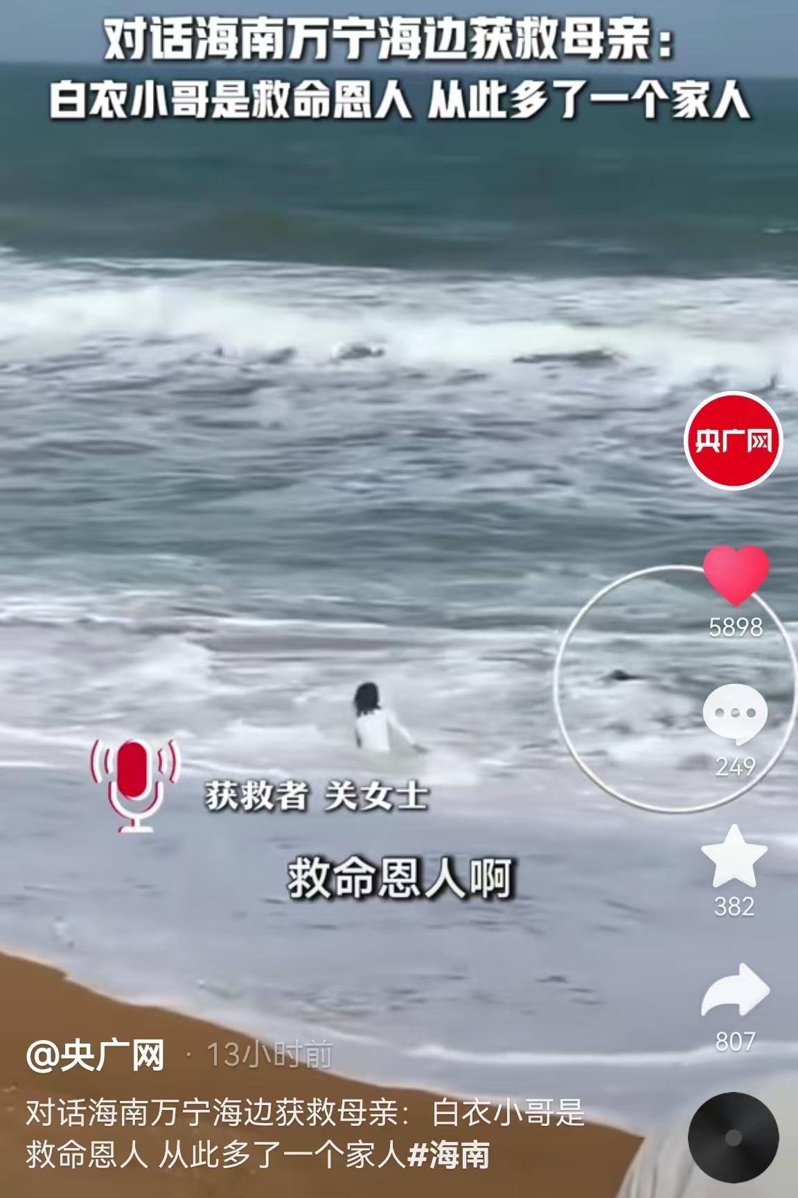 央視新聞和人民日報轉發了白衣男子海邊勇救母女的視頻,他們爲白衣男子點贊,並號召廣大網友爲白衣男子點贊。