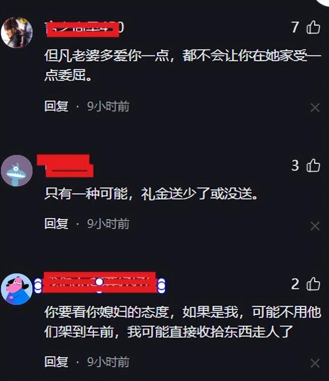 還有網友猜測男子這麼被侮辱,可能是因爲經濟條件不好,或者帶的禮品很普通。也因此有網友建議這位女婿努力賺錢,只要有錢了,在老丈人家,老丈人都要看他臉色。