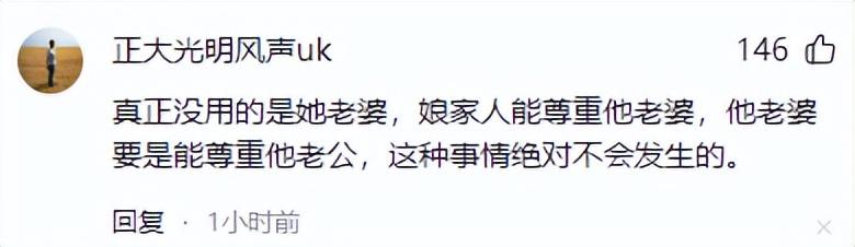 還有網友說,在這個事件中,男子妻子的態度很重要,妻子的沉默間接造就了丈夫被侮辱,如果妻子當場發聲,估計叔叔和老丈人也不敢這麼欺負人。