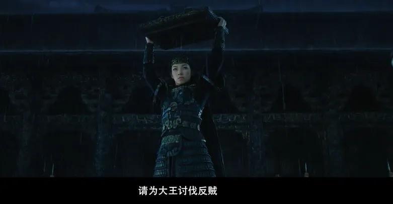 影片中,她一記馬上起揚、一句擲地有聲的“請爲大王討伐反賊”。