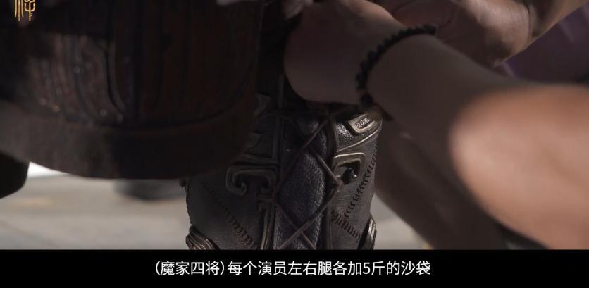 演員們在身披重甲、身穿胖襖之餘,還要在腿上綁上沙袋,全身負重累計超過60斤。