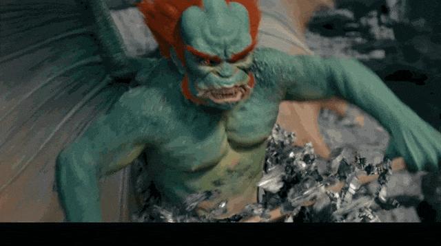 藍臉的魔禮青振臂一揮,青雲劍以劍化龍,巨龍盤旋翻騰氣勢非凡。