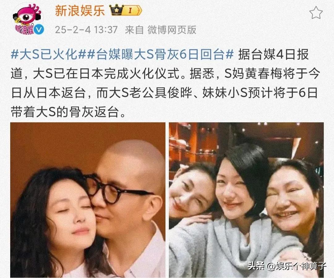 最新消息,大S遺體已經在日本火化,具俊曄會捧着骨灰返臺,塵歸塵,土歸土,一切都結束了。