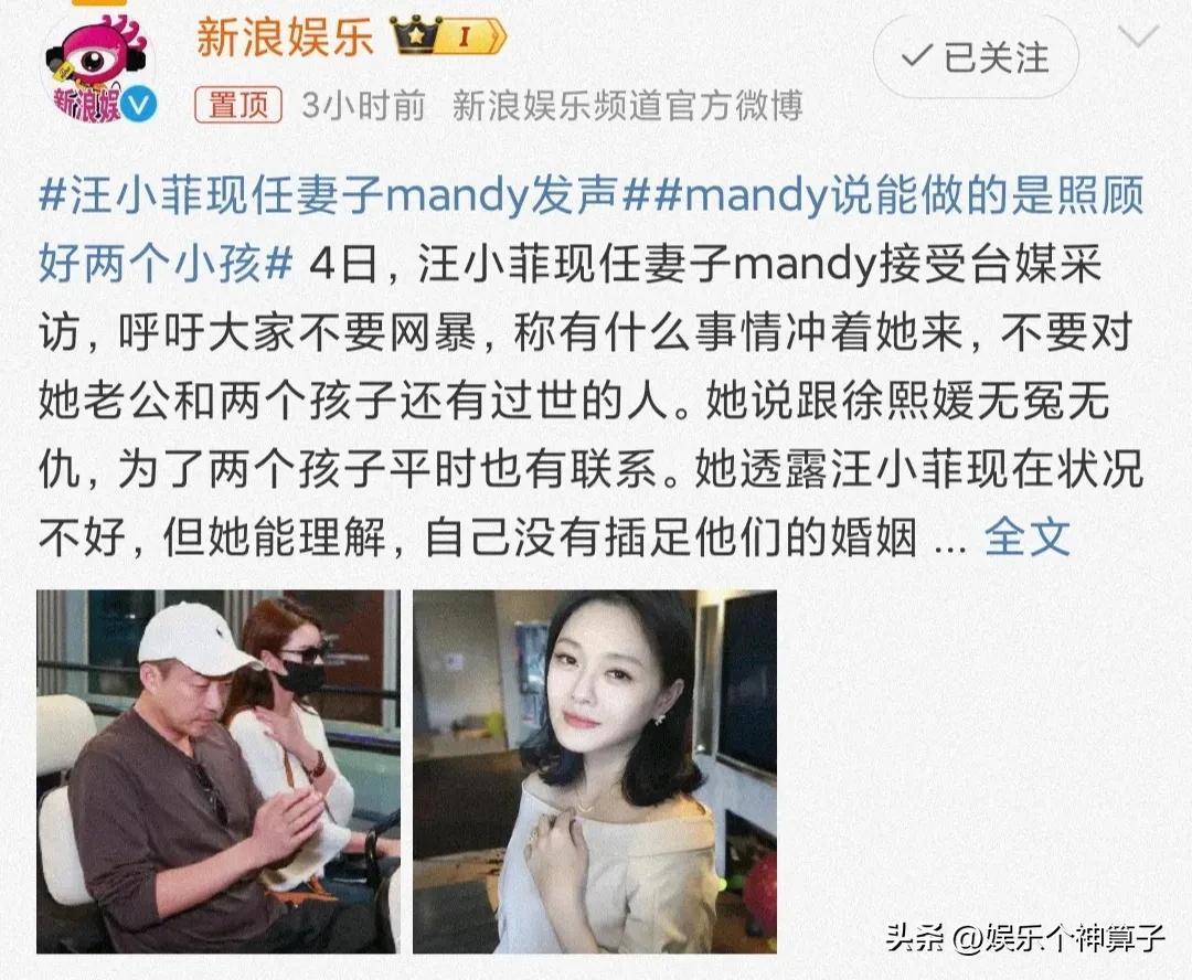 汪小菲的現任妻子馬筱梅通過媒體表示,會照顧好兩個孩子,很理解老公此時此刻的心情。