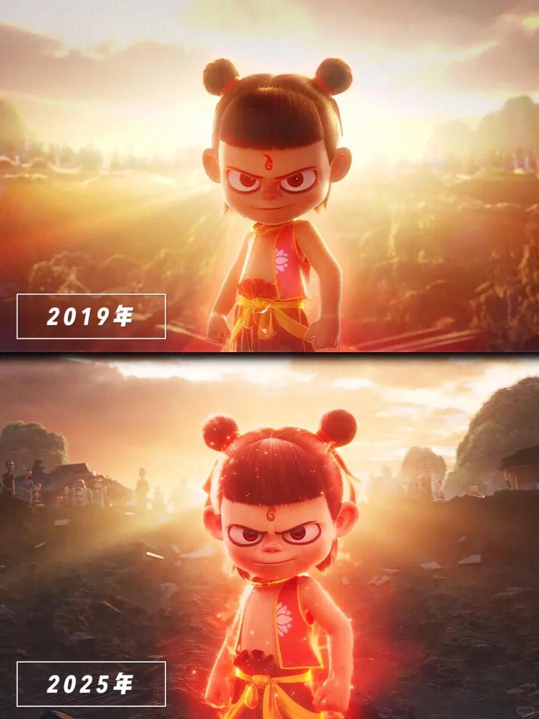 認真,是《哪吒2》五年期間始終堅持的,一張吒兒同一畫面的前後5年對比就能看出來。