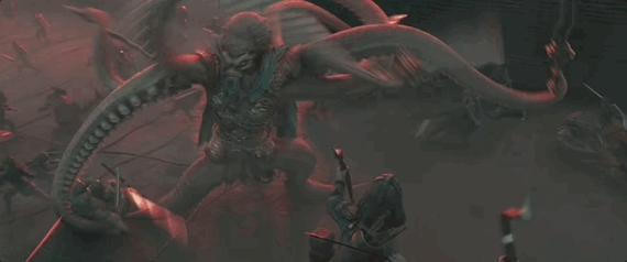 當申公豹用裂空爪改裝過的長鞭劃出裂空,被困於海底煉獄的裂空的畫面,壓迫感滿滿。