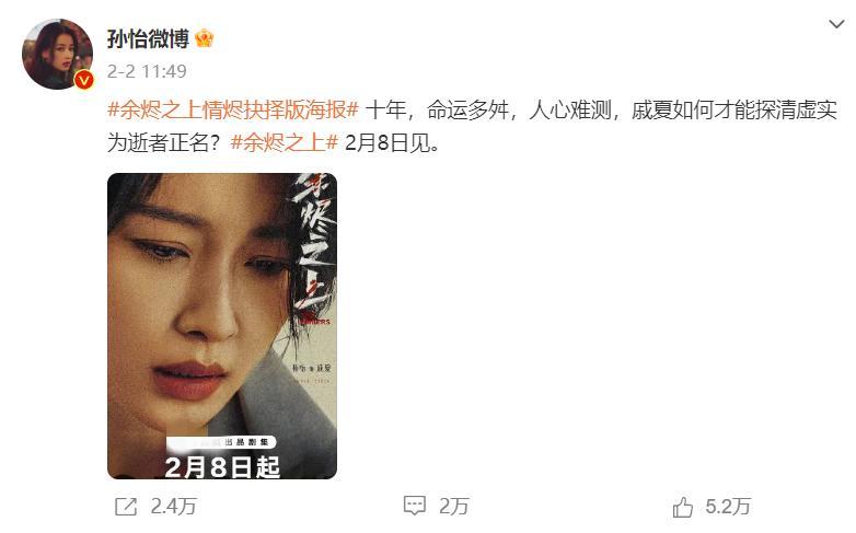 至於孫怡爲什麼選擇在山東過春節不得而知。可知的是這幾天,她還在網上宣傳自己出演的電視劇《餘燼之上》。