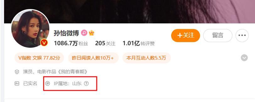 可知的是孫怡這次春節在山東,因爲她的賬號IP地址顯示在山東。