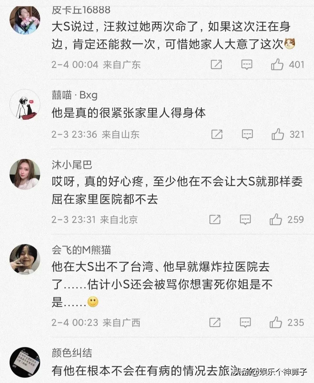 甚至有網友認爲,如果在大S身邊的是汪小菲,可能悲劇就不會發生了,儘管只是一種猜測和想法,不過,這種觀點,得到大多數人的認同。