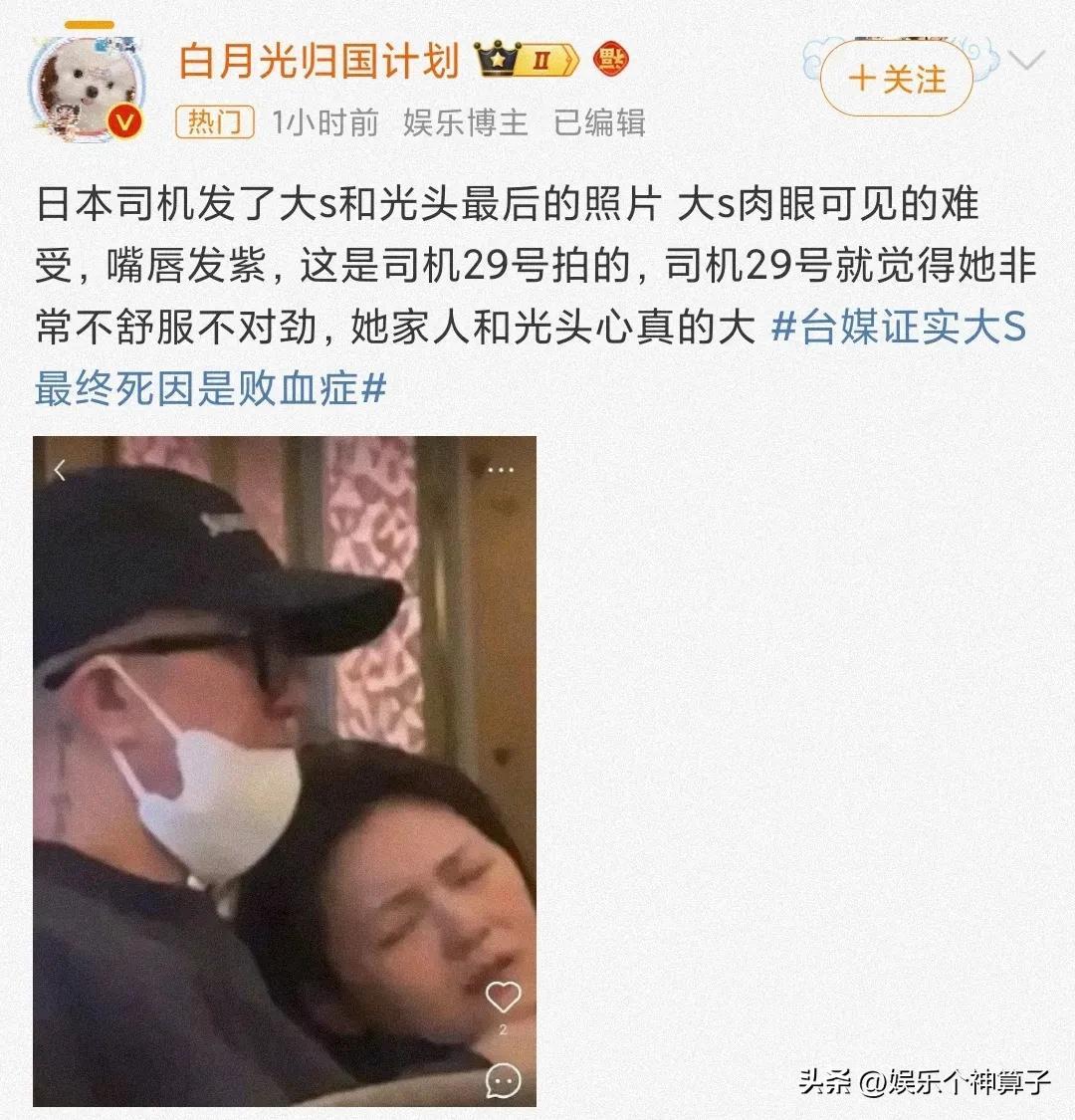 臺媒證實大S最終死因是敗血症,開始只是流感併發肺炎,當然不能責怪家人忽略病情,只能深感惋惜,然而,網上爆料的各種細節,連網友都覺得氣憤,汪小菲如此思念前妻,又怎能不抓狂。