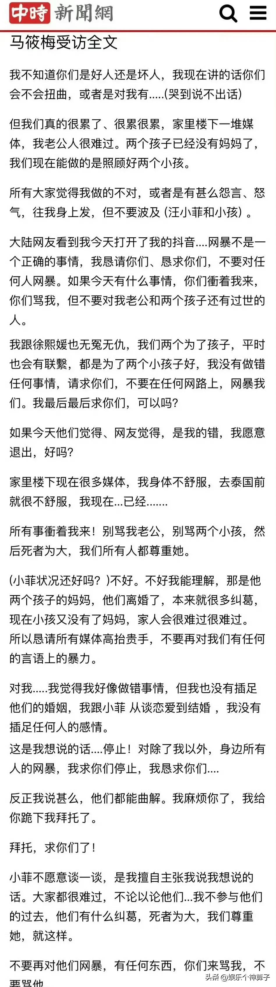 另外,汪小菲現任妻子馬筱梅接受採訪時透露,會盡力照顧好兩個孩子,有一說一,這事做的很體面。