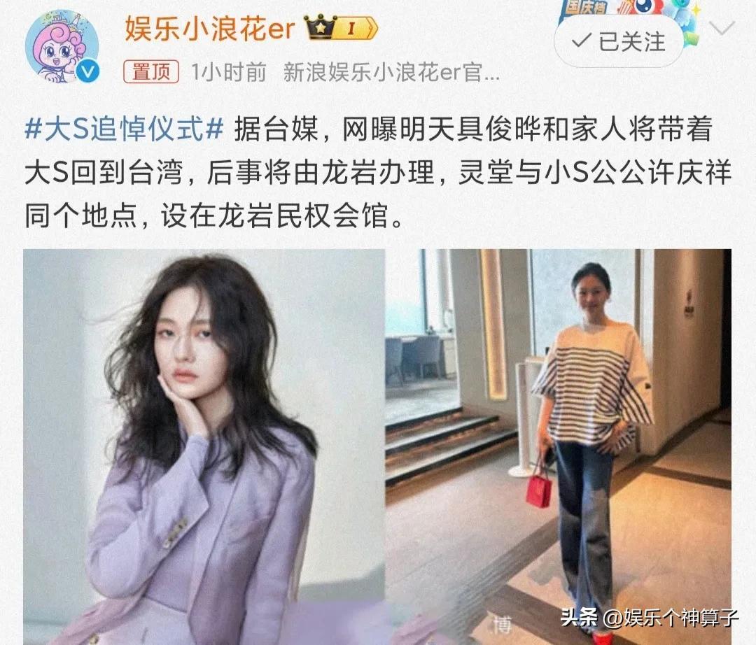 話說,大S已經走了,責怪誰都毫無意義,據臺媒報道,追悼儀式即將舉行,靈堂地點也已經確定,明天,家人會帶着大S的骨灰返回臺北!