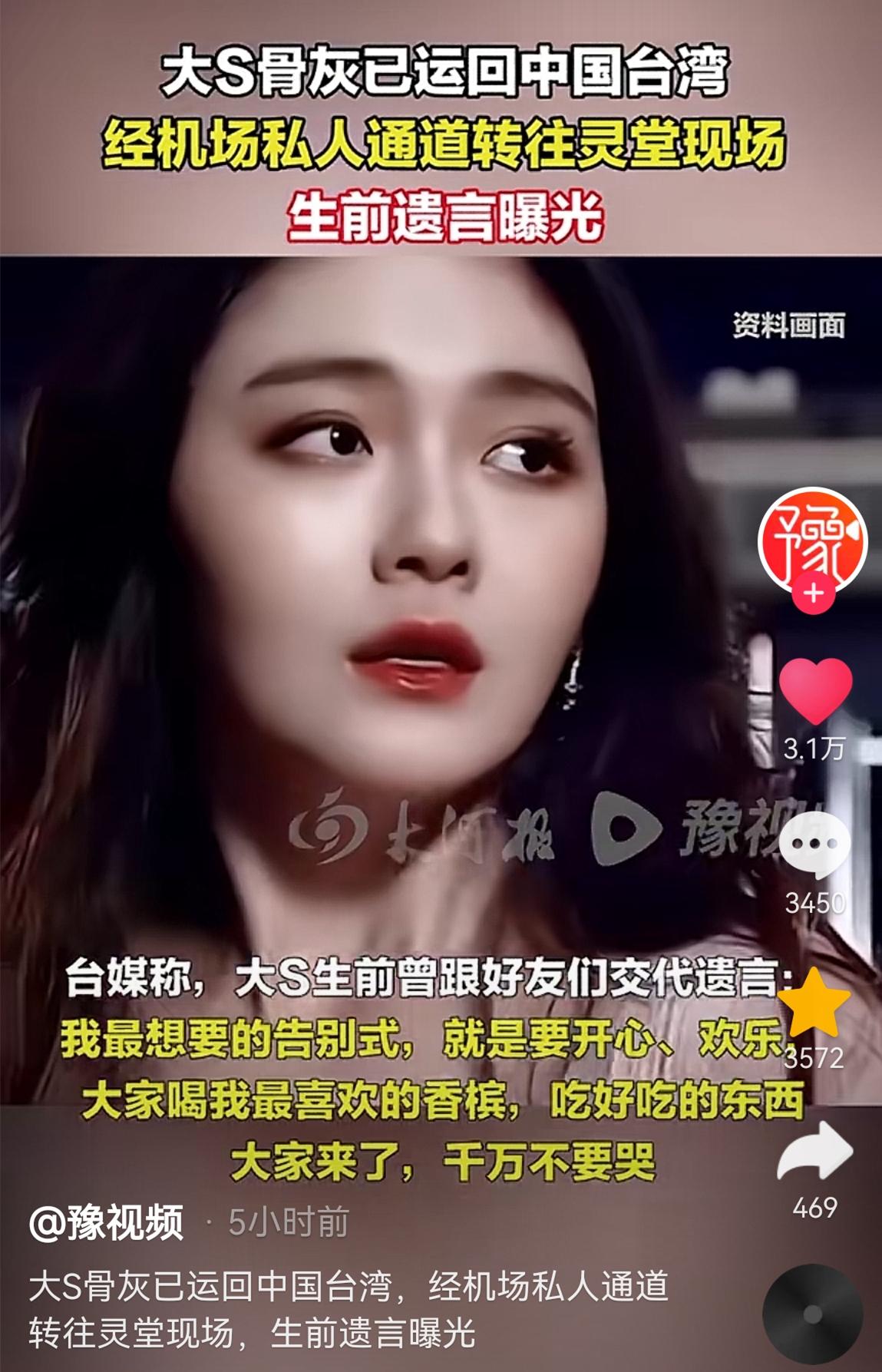 在這之前,大S的媽媽黃春梅就透露了大S的臨終心願,就是希望大S的骨灰回臺時,不要被媒體追拍,不要在路上跟隨。