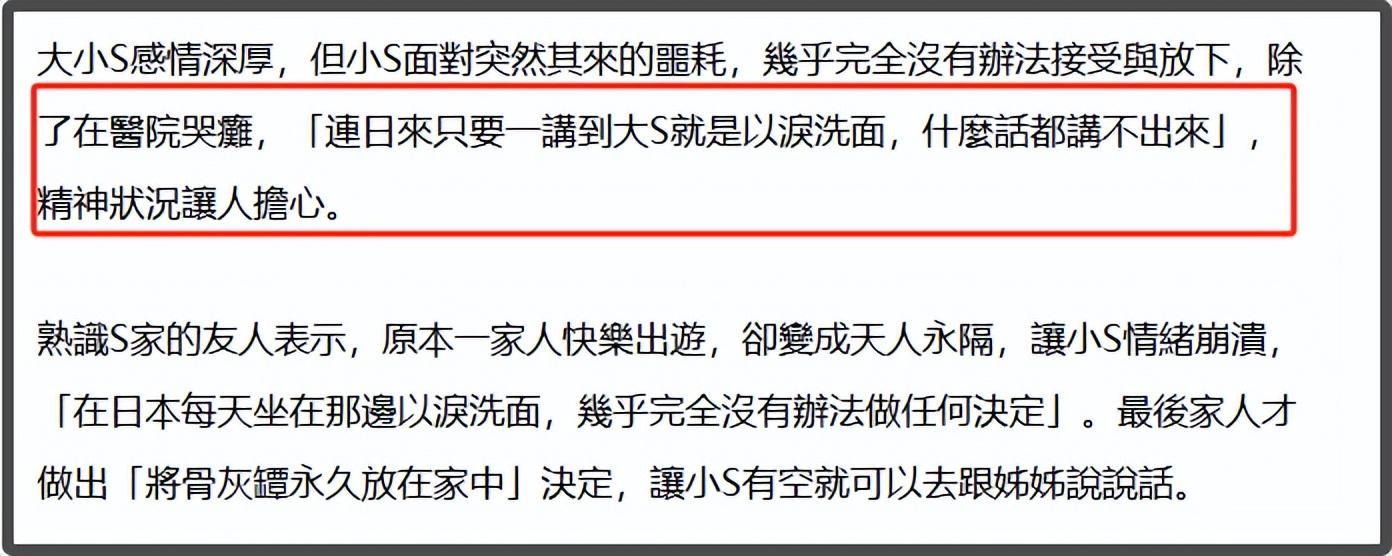 誰能想到一家人高高興興的去日本遊玩,回來時大S卻成了一盒骨灰。