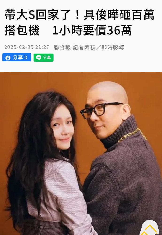 根據臺媒報道,這一次具俊曄他們回來是乘坐私人飛機回來的,是在大S的家人悲傷至極,六神無主時,大S的貴人王偉忠給拿定的包機主意。