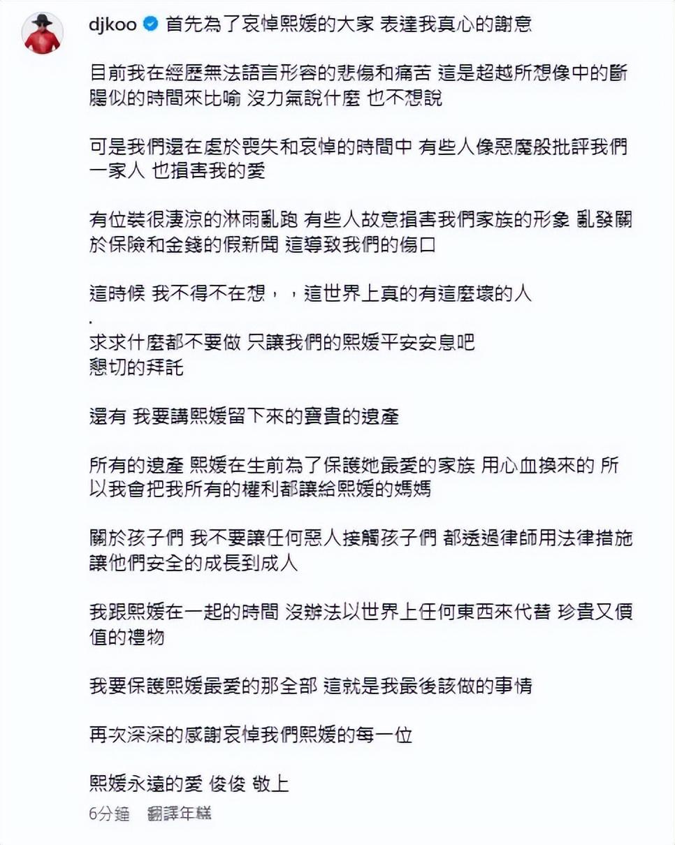 2月6日晚,在大S離世的第五天,具俊曄發佈了一篇長文,透露了很多重要信息。