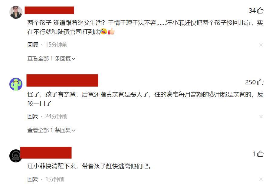有網友說“兩個孩子 難道跟着繼父生活?於情於理於法不容……汪小菲趕快把兩個孩子接回北京,實在不行就和滷蛋官司打到底。”